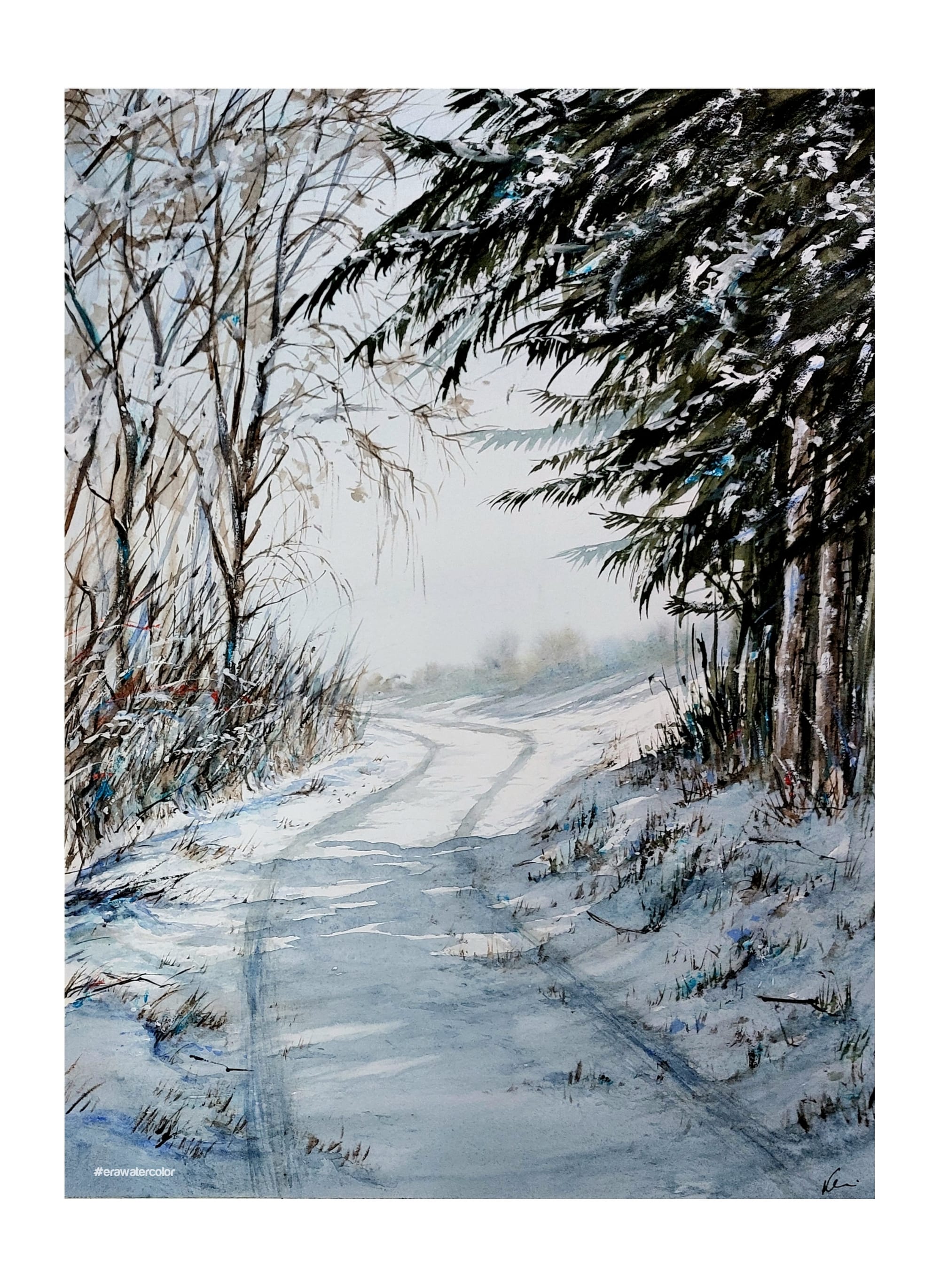 • Watercolors made in the colors of winter.